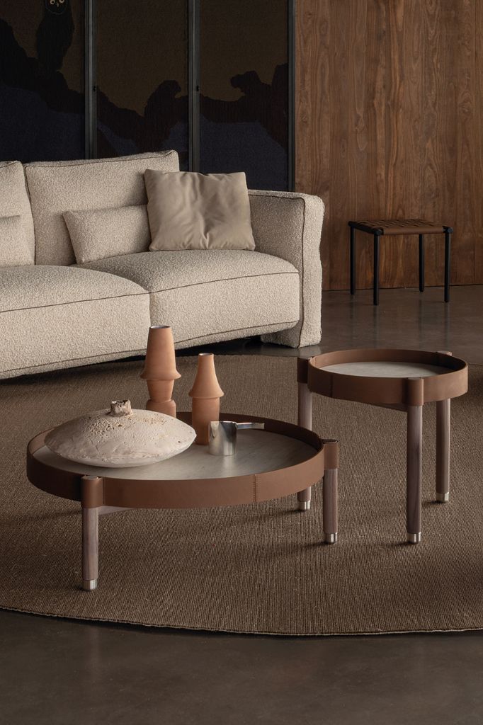 Essential in form, sophisticated in detail. The Otto coffee tables reinterpret the concept of lightness with a slim-profile metal structure, enhanced by the distinctive detail of a leather cord, a refined touch of craftsmanship.miro coffee tables