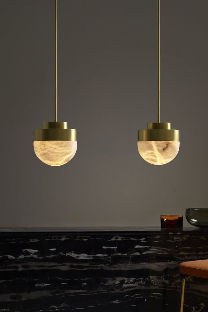 Championing noble materials such as satin brass, bronze and alabaster stone, the ANVERS Pendant is an elegant, decorative hanging light.