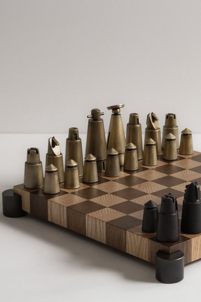 Szachownica wykonana jest z dymionego drewna dębowego i jesionowego. Stylizowane figury są wyściełane filcem, aby zapewnić graczom komfort sensoryczny.