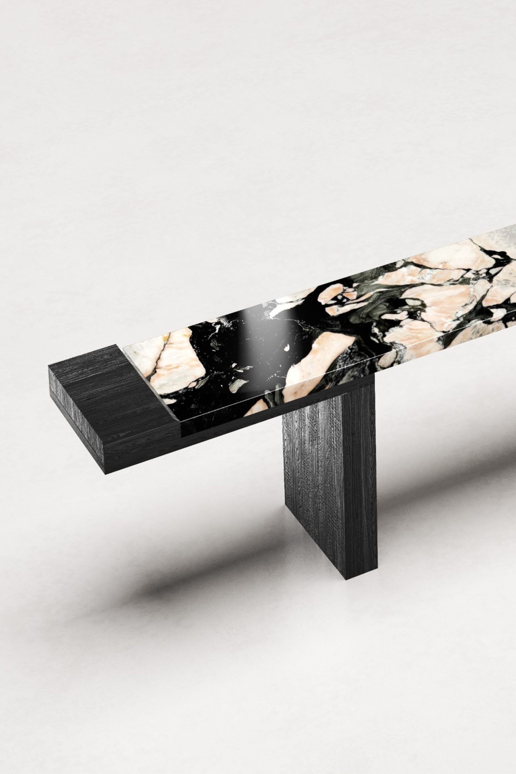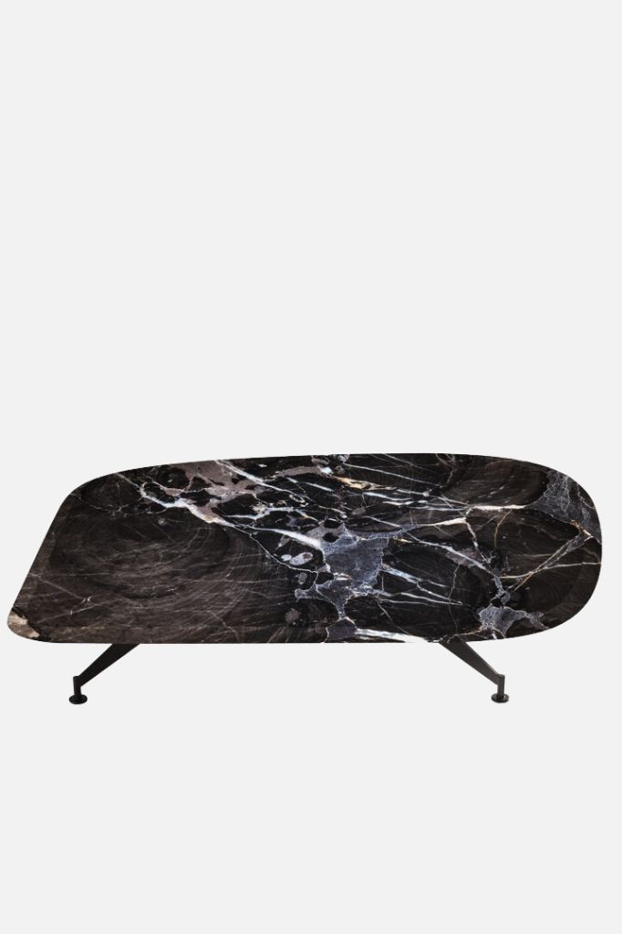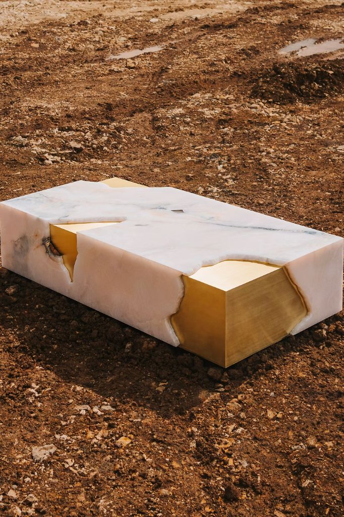Stolik kawowy Arthur został wykonany z jednego kawałka marmuru, który łączy w sobie dwa odmienne materiały, tworząc wizualną harmonię.ARTS AND CRAFTS – CATARINA RICCABONA