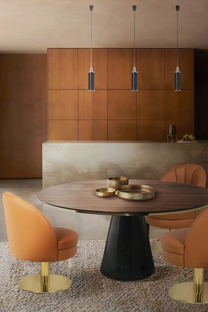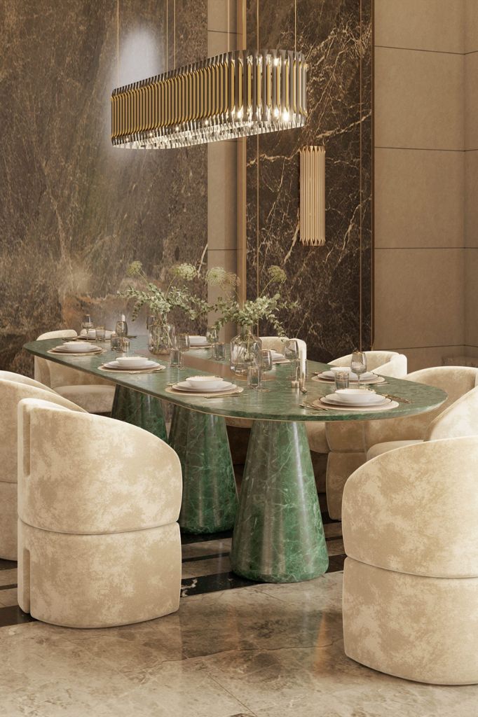 Nowoczesny stół jadalniany Bertoia to majestatyczny akcent w każdej jadalni. Wyrafinowany, wzmocniony metalowym pierścieniem lity marmur stanowi oszałamiający hołd dla designu.
