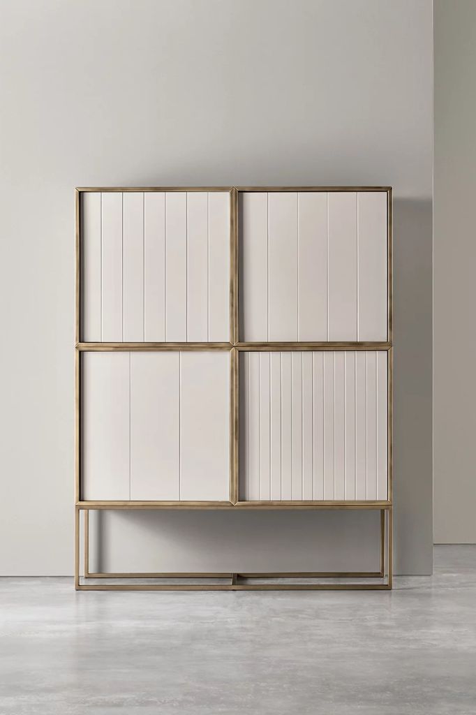 Czterodrzwiowa szafka ścienna z metalową podstawą Amadeus to funkcjonalny mebel do przechowywania i element graficzny w jednym, który wnosi do pomieszczenia unikalny akcent Meridiani.Animo