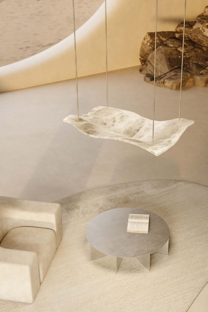 Współczesna elegancja inspirowana naturą. Lampa „Aire” łączy w sobie współczesne rzemiosło z naturalnym pięknem szlachetnego kamienia alabastrowego.ANITA