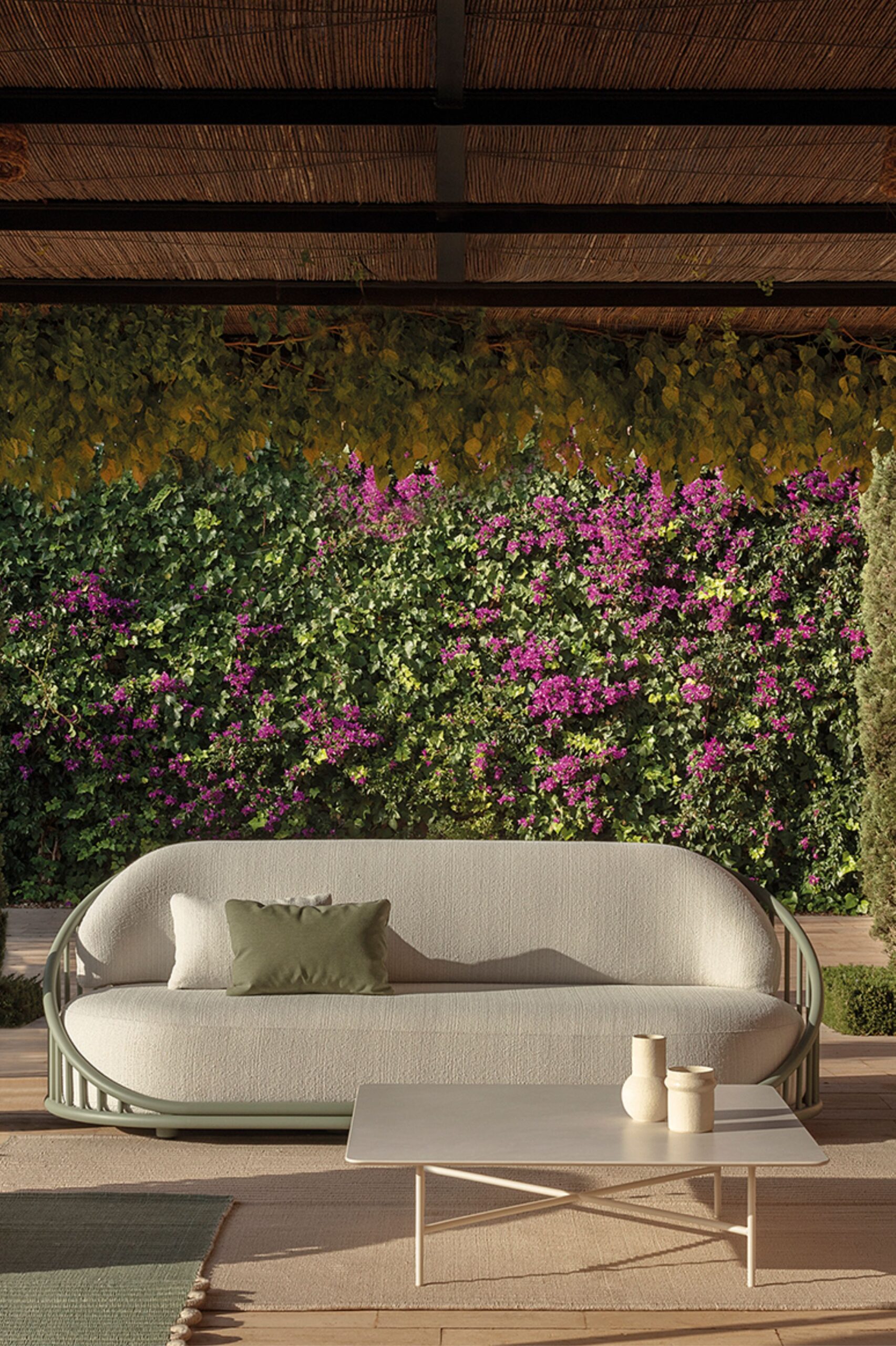 Sofa Céline emanuje spokojem, jednocześnie przyciągając wzrok i bez wysiłku podnosząc walory każdej przestrzeni outdoorowej.