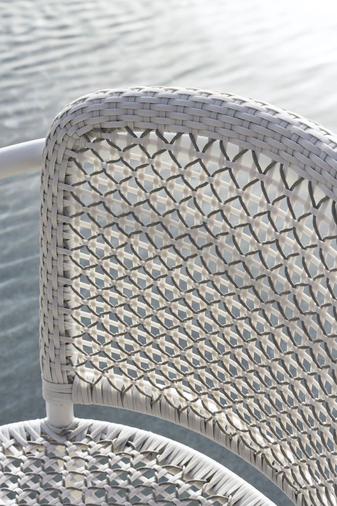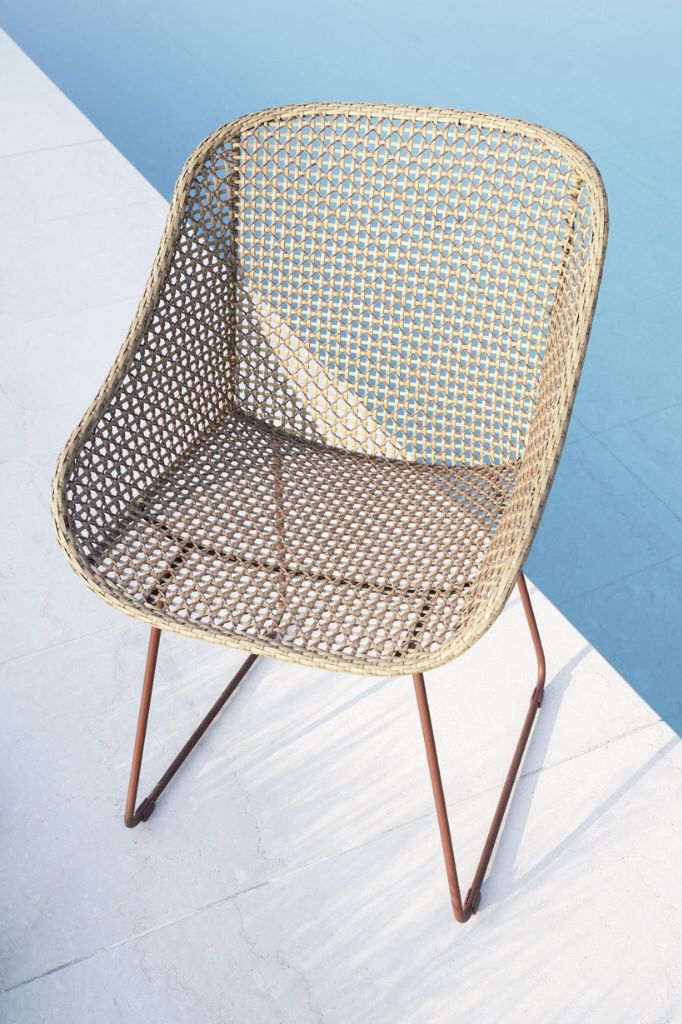 Colette 24, inspired by the informal elegance of Parisian bistro seating, is an outdoor chair that brings the charm of France to outdoor settings. It features a steel tubular frame treated for outdoor use, painted in a matte okidol finish. Woven in Colette Resin.
