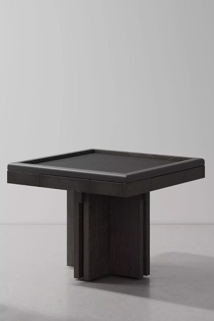 Zakotwiczony w modernistycznej precyzji, Dinh Mahjong Table zawiera praktyczne funkcje, które definiują jego głębię i elegancję. Zmiękczone krawędzie są pokryte skórą, zapewniając komfort podczas długiej, wciągającej gry. Wyłożona filcem powierzchnia przyjmuje monochromatyczną barwę, która podkreśla jej wyjątkową miękkość w dotyku. Funkcjonalność mebla zwiększają szuflady na elementy do gry i napoje. Każdy detal został dopracowany i wykonany z najwyższą starannością.