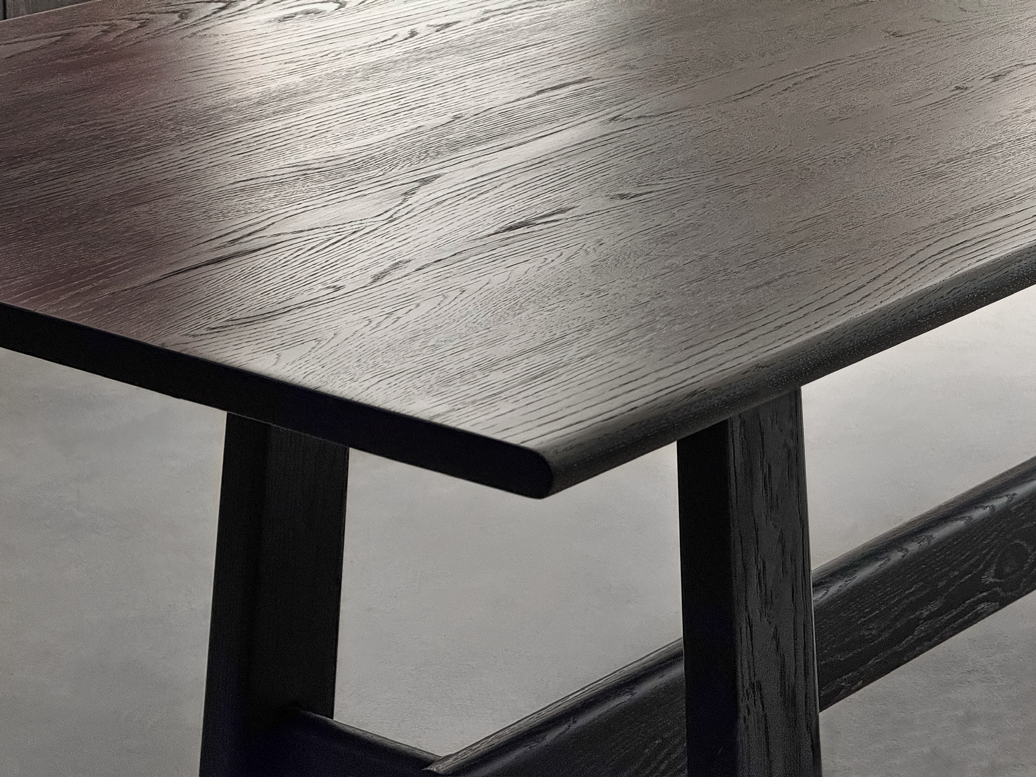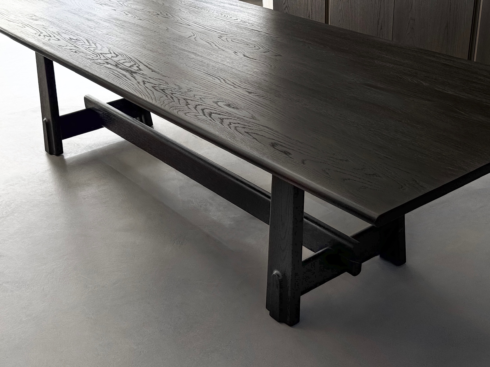 The Odette table combines architectural simplicity with refined craftsmanship. Inspired by the form of Eastern temple gates, it features a solid construction made of solid wood and hand-finished details. Trapezoidal legs and decorative beams create a harmonious blend of tradition and modernity, giving the table a unique and timeless character.