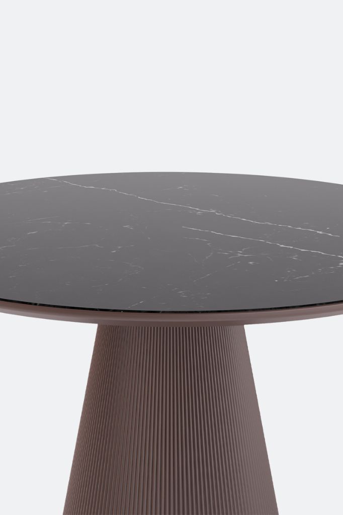 Okrągły stół Eleanor urzeka płynnymi krzywiznami i wyrafinowaną sylwetką. Jego okrągły kształt sprawia, że idealnie nadaje się do przyjmowania gości i cieszenia się najlepszymi chwilami na świeżym powietrzu. Połączenie eleganckich linii, wyrafinowanych faktur i metalicznych detali tworzy idealną równowagę, dodając uroku wyrafinowanym przestrzeniom.