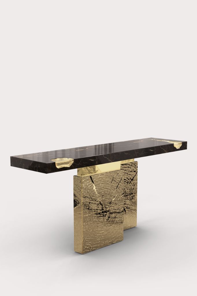 Konsola Empire III to wyjątkowy element wystroju, który płynnie łączy kunszt rzemieślniczy z luksusowymi materiałami. Ta ekskluzywna konsola, wykonana ręcznie przez mistrzów rzemiosła, charakteryzuje się płynnymi, organicznymi liniami i polerowaną podstawą z odlewu mosiężnego, emanującą zarówno siłą jak i wyrafinowaniem.