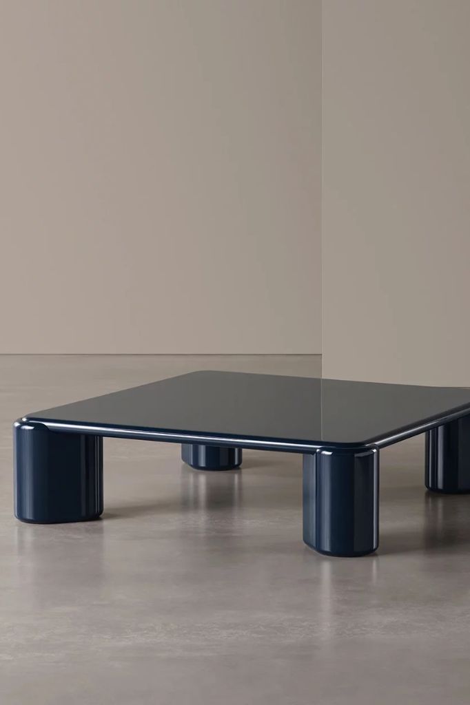 Smukły, ale solidny blat elegancko wsparty jest na rzeźbionych nogach, co nadaje meblowi bardziej monolityczny wygląd. Stoliki kawowe Frank są dostępne w wersji kwadratowej lub prostokątnej, z palonego dębu lub we wszystkich odcieniach błyszczących i matowych lakierów.
