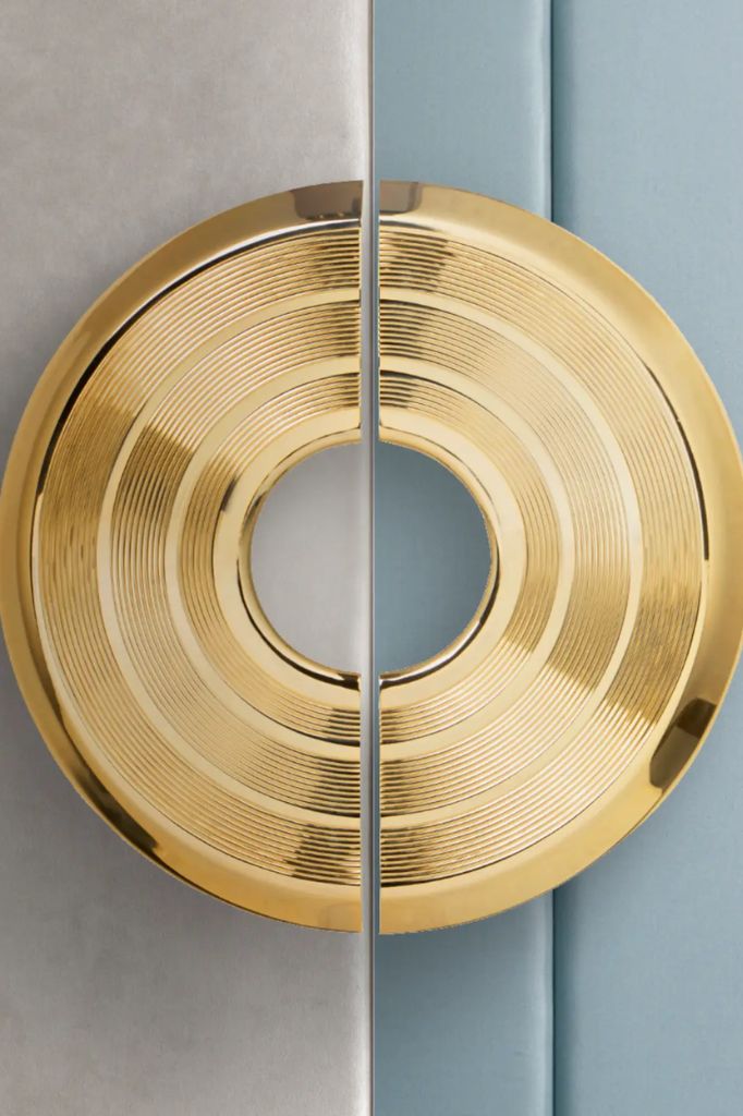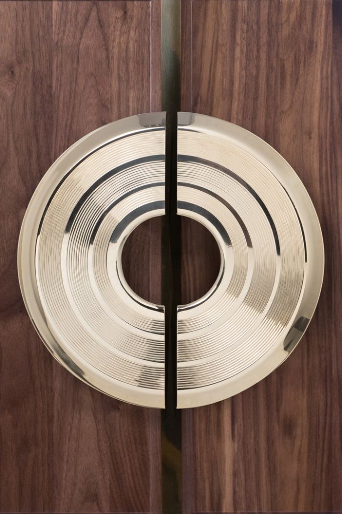Brubeck Door Hardware is composed of asymmetrical Polished Brass tubes, creating an artistic series of furniture and Door Handles.