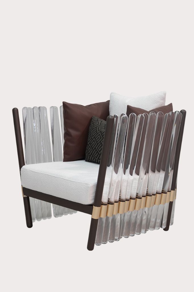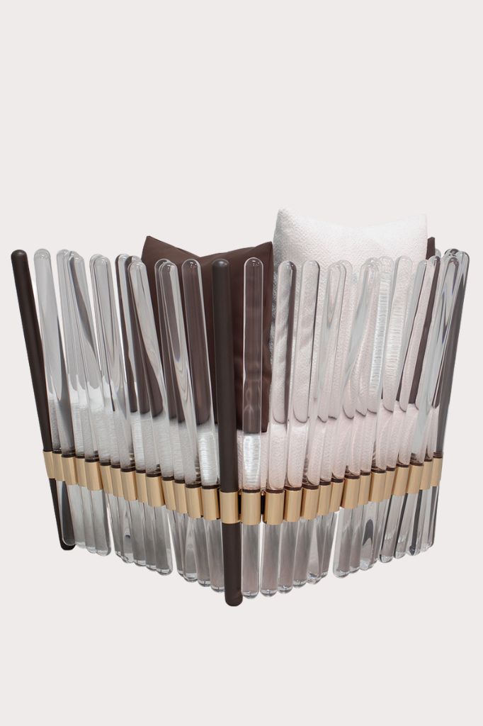 Fotel Houdini to arcydzieło, w którym nowoczesna elegancja łączy się z wizjonerskim designem. Dzięki grze światła i cienia przechodzącej przez akrylowe fale fotel idealnie komponuje się z otoczeniem, tworząc harmonijne połączenie ponadczasowego designu i uroku przestrzeni zewnętrznej.