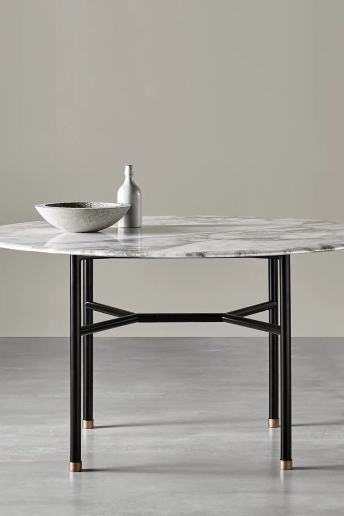 Hubert was born from the desire to create a simple table, defined by a very linear tubular iron frame that supports different types of top, with various shapes and sizes. Hubert presents a wide range of different composition options; in its graphic neatness it offers the gracious possibility of a double top or a small brass tip in the frame.