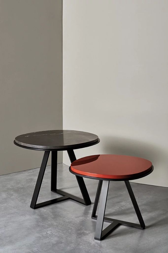 Low tables available in different dimensions: metal base with a bronzed brass, platinum steel or matt black varnish, the top can be both in lacquer or marble. Judd’s formal simplicity is the result of a deep analysis on aesthetics, manufacture and finishes.