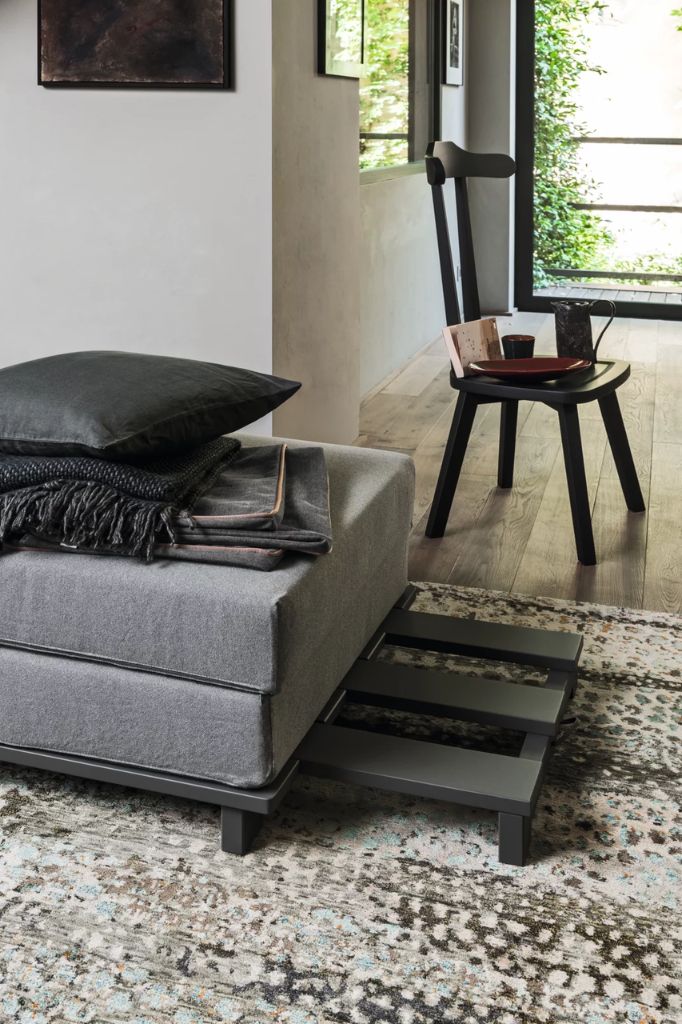 Kubo to wolnostojące łóżko, które stanowi nową interpretację typowego łóżka orientalnego. Jego główną cechą jest możliwość przekształcania: zdejmowana podstawa z listewkami ukryta pod składanym materacem wysuwa się jednym ruchem, umożliwiając przekształcenie pufy w  sofę, łóżko pojedyncze lub podwójne. Jego wszechstronność i oszczędność miejsca sprawiają, że idealnie nadaje się do pomieszczeń o różnej wielkości – od salonu, przez gabinet, po sypialnię.