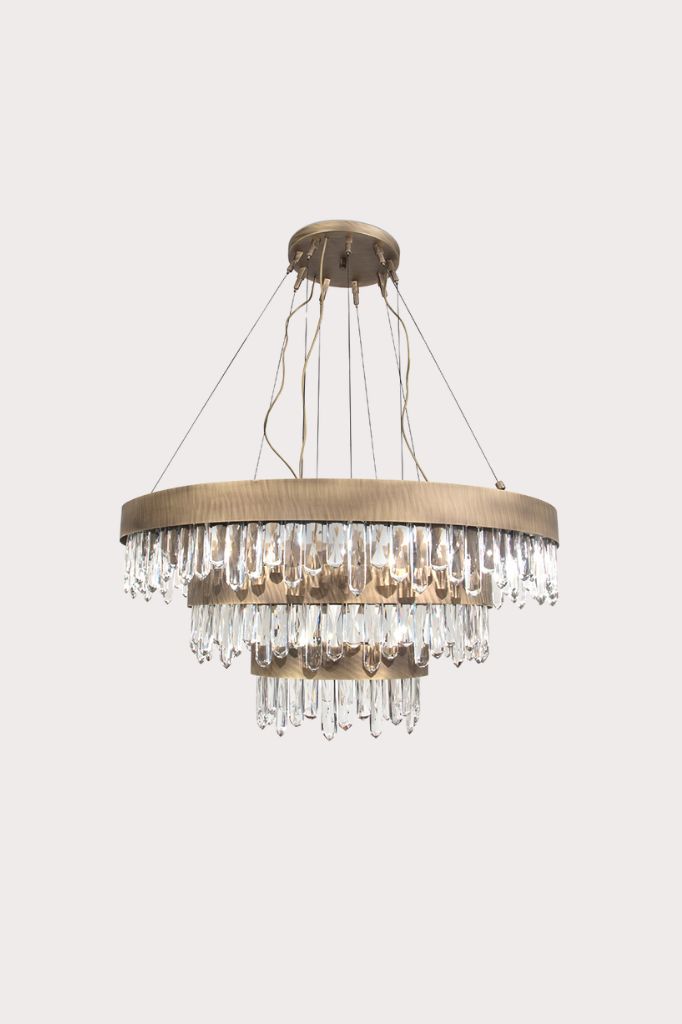 Inspiracją dla projektu żyrandola Naicca symbolizującego legendę o pochodzeniu kryształów, była fascynująca jaskinia Giant Crystal Cave w Meksyku. Postarzana konstrukcja z szczotkowanego mosiądzu i dyfuzor z kryształu kwarcowego tworzą razem efekt rozjaśniający każde wnętrze, wypełniając pomieszczenie silną, ale spokojną atmosferą.