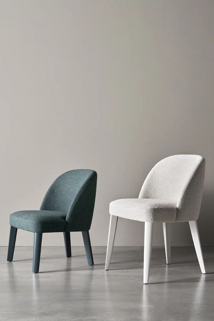 Dining chair which makes the extreme lightness its main feature thanks to the POLIMEX® structure. It is also available in the version with armrests which are slightly sketched by the curved of the frame.