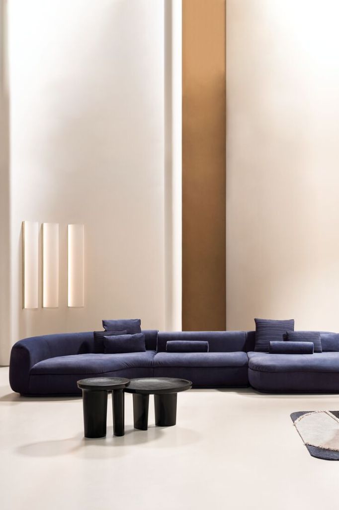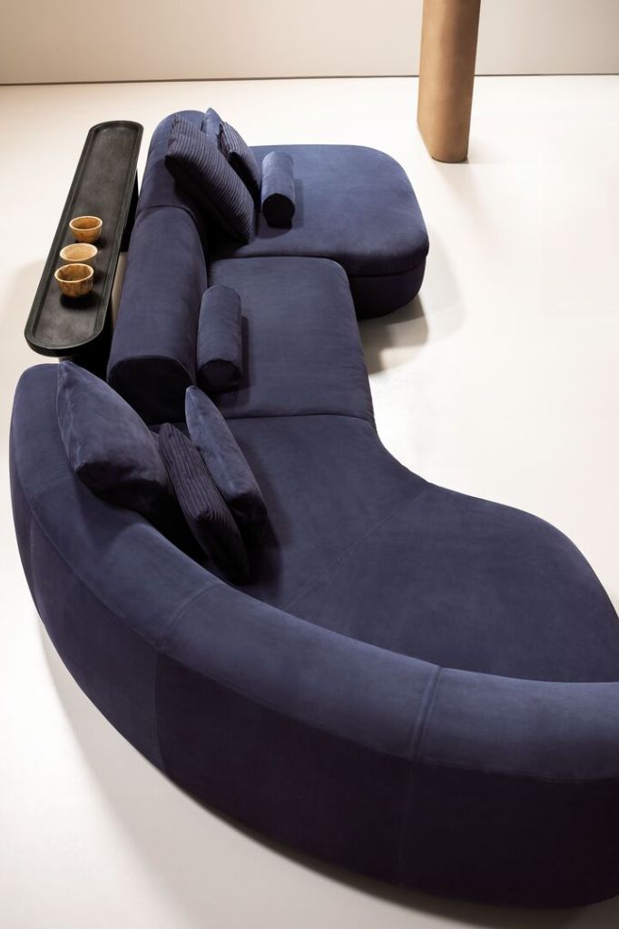 Socialising is the key word. Piaf is a sofa with a curved design that represents the ideal focus of the living room according to Baxter. A modular and cosy piece that redefines space with extraordinary elegance and generous, reassuring shapes. The model’s originality lies in a series of voluminous modules that can be played with to create compositions characterised by curves, a key element on which to lengthen the seats and give the piece ever new shapes. Surrendering to Piaf’s rounded, smoothed contours means allowing yourself to be enveloped in a comfortable embrace, a sense of protection and softness made irresistible by the leather upholstery.