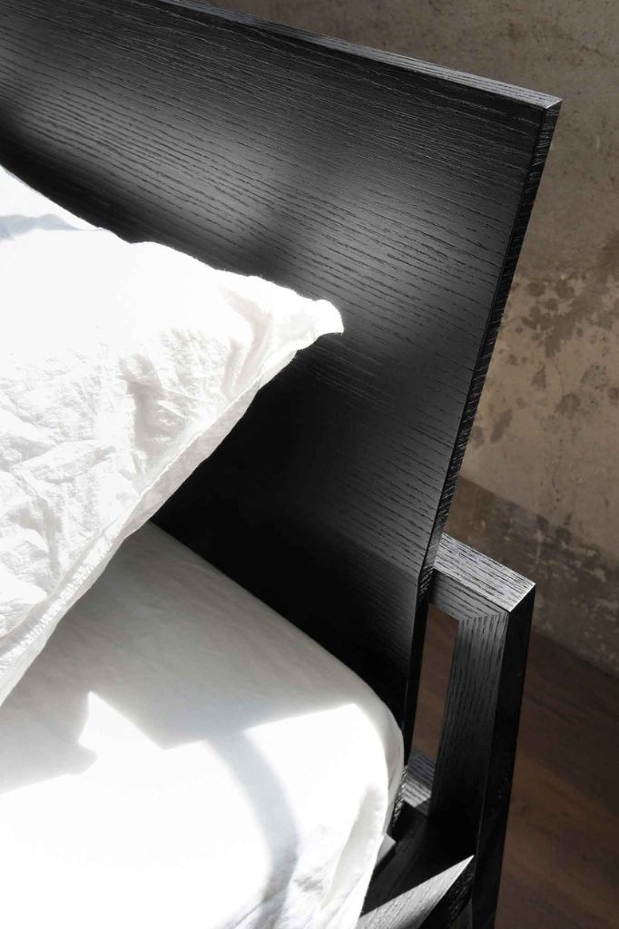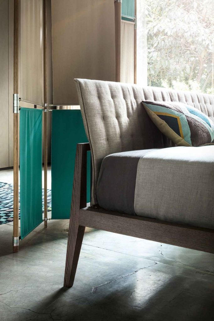 Zgodnie z tradycją Lema, Theo od Studio Kairos łączy ciepło i bogactwo drewna, użytego do stworzenia eleganckiej konstrukcji, z czystym i odważnym designem. Unikalną cechą tego mebla jest pochylone wezgłowie, które również jest wykonane z drewna, ale ma jeszcze smuklejszy profil. Tworzy ono harmonijny kontrast z resztą konstrukcji, przełamując liniowość projektu. Dla uzyskania bardziej łagodnego wykończenia zagłówek może być wyposażony w wyrafinowane wykończenie z przeszyciami.