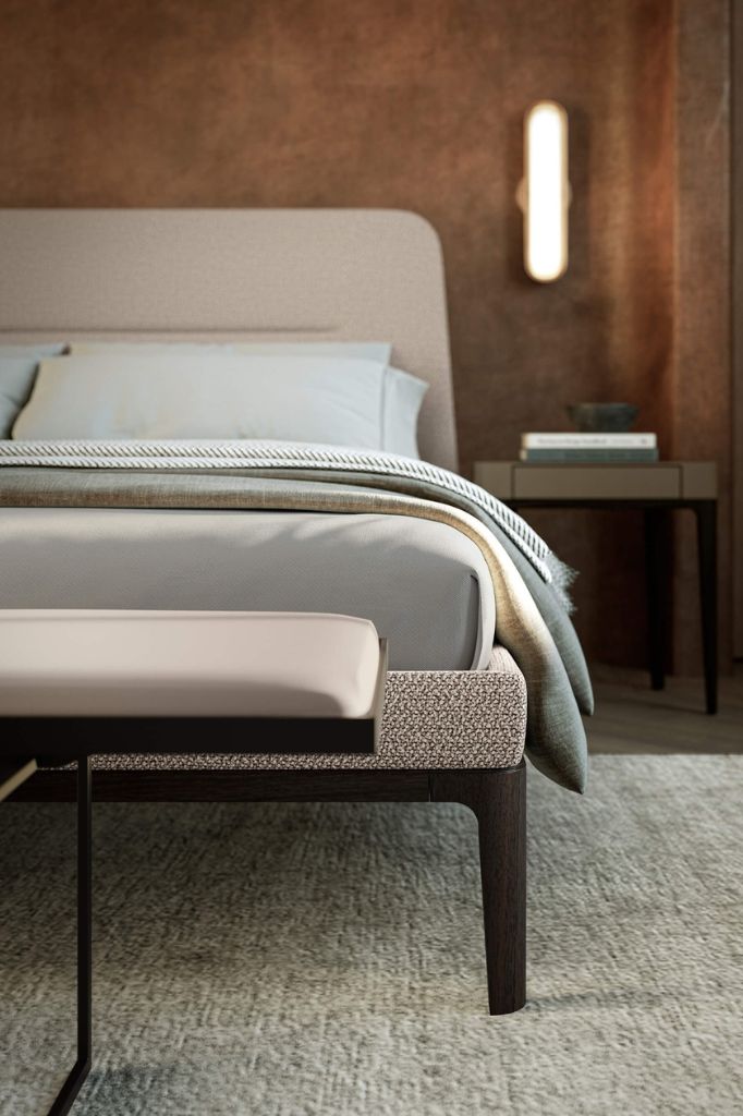 Łóżko tapicerowane Victoriano o solidnej konstrukcji z litego drewna, charakteryzujące się królewską prezencją, czerpiąc inspirację z dawnych stylów i łącząc je z nowoczesnym designem.