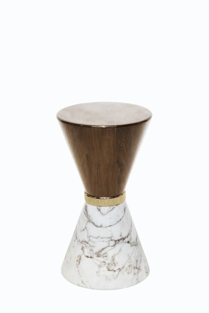 Vinicius to przykład dwoistości i kontrastów uzyskanych dzięki połączeniu dwóch najlepszych materiałów na świecie: nero marquina i marmuru estremoz. Kształt klepsydry podkreślany przez unikalną, polerowaną mosiężną opaskę w centrum projektu.